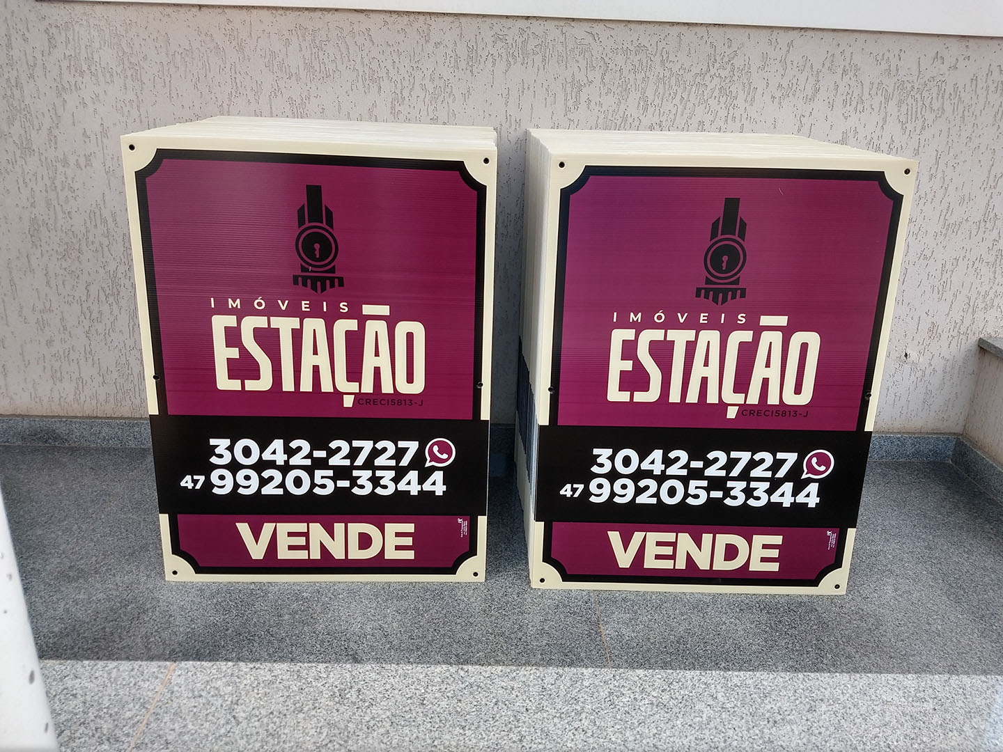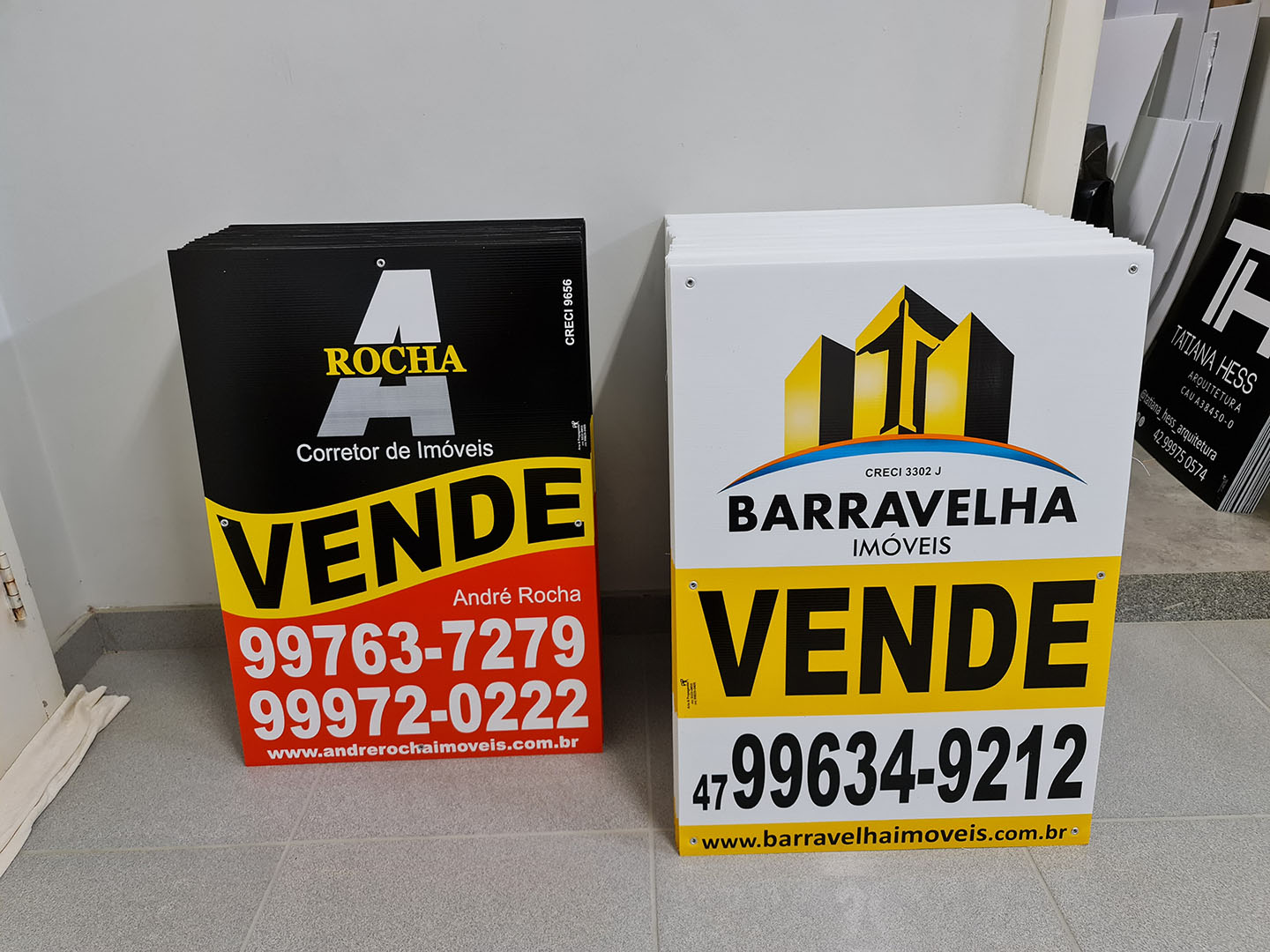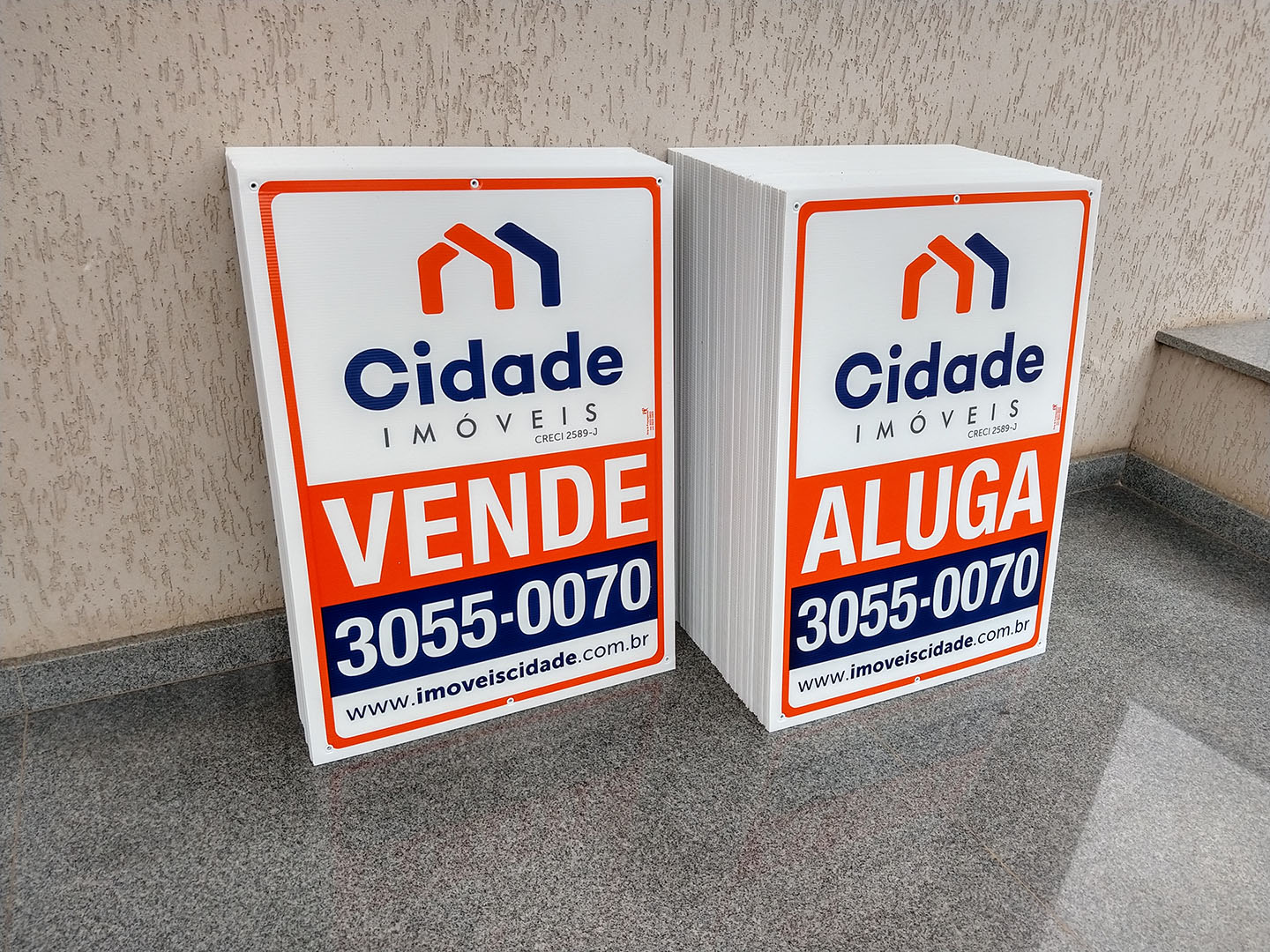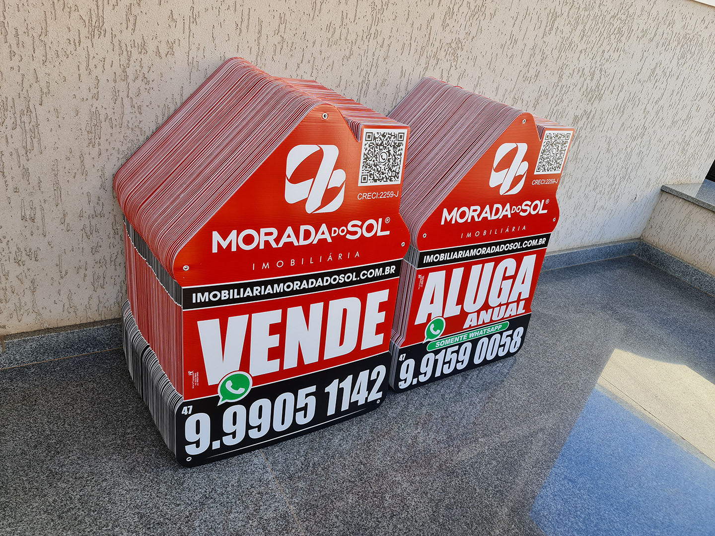 Em busca do lar dos sonhos, muitos exploram os bairros desejados. Uma placa imobiliária bem elaborada pode atrair mais contatos e marcar presença, direcionando os interessados para o site da imobiliária, WhatsApp ou transmitindo confiança de que sua empresa é referência na região.